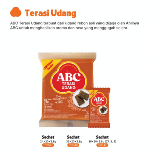ABC Terasi Udang dibuat dari udang rebon asli pilihan yang menghasilkan aroma dan rasa khas, menjadikan masakan lebih sedap dan menggugah selera. Dengan kualitas terjaga dari ahlinya ABC, produk ini cocok untuk kebutuhan rumah tangga maupun usaha kuliner.
